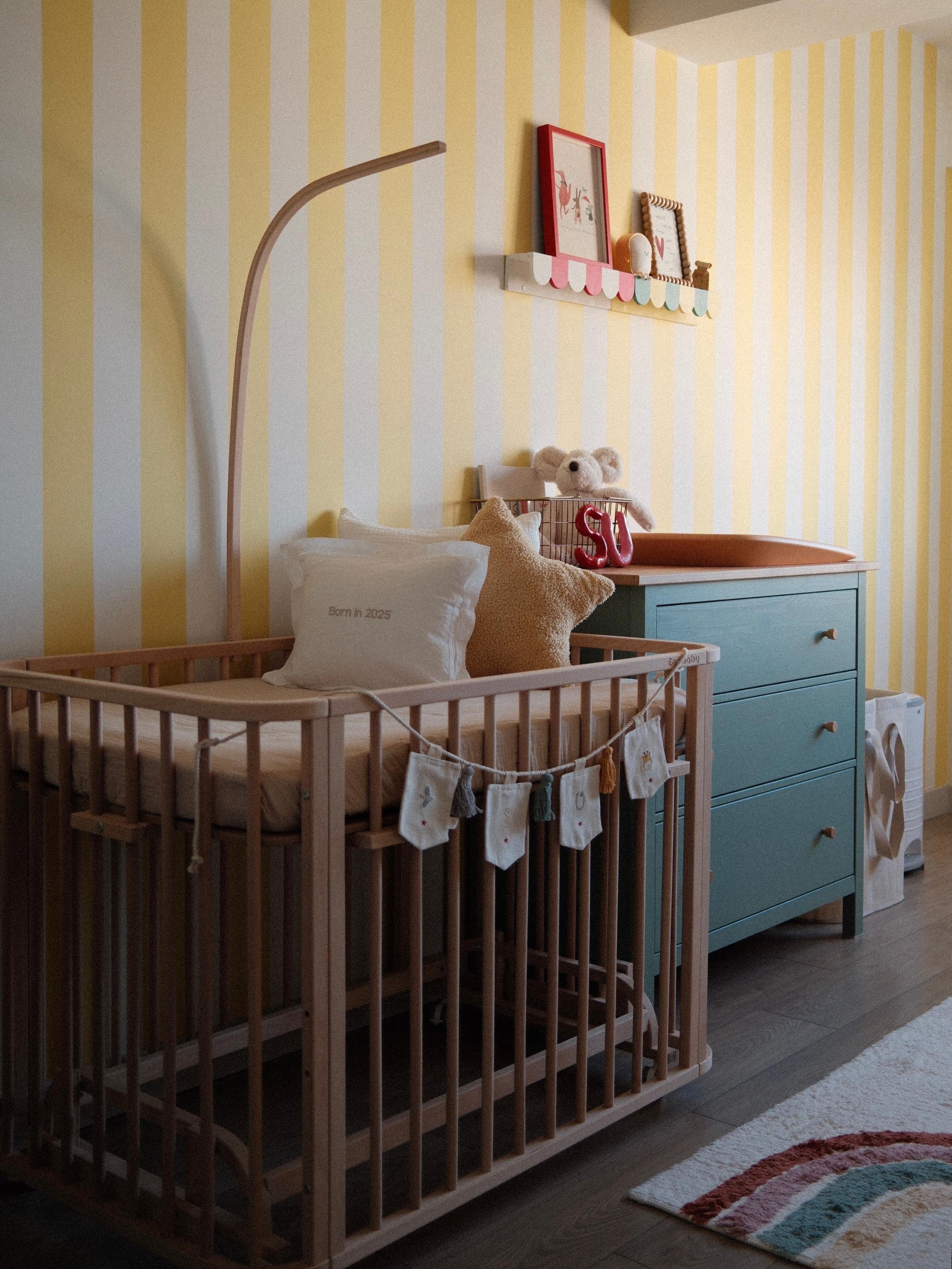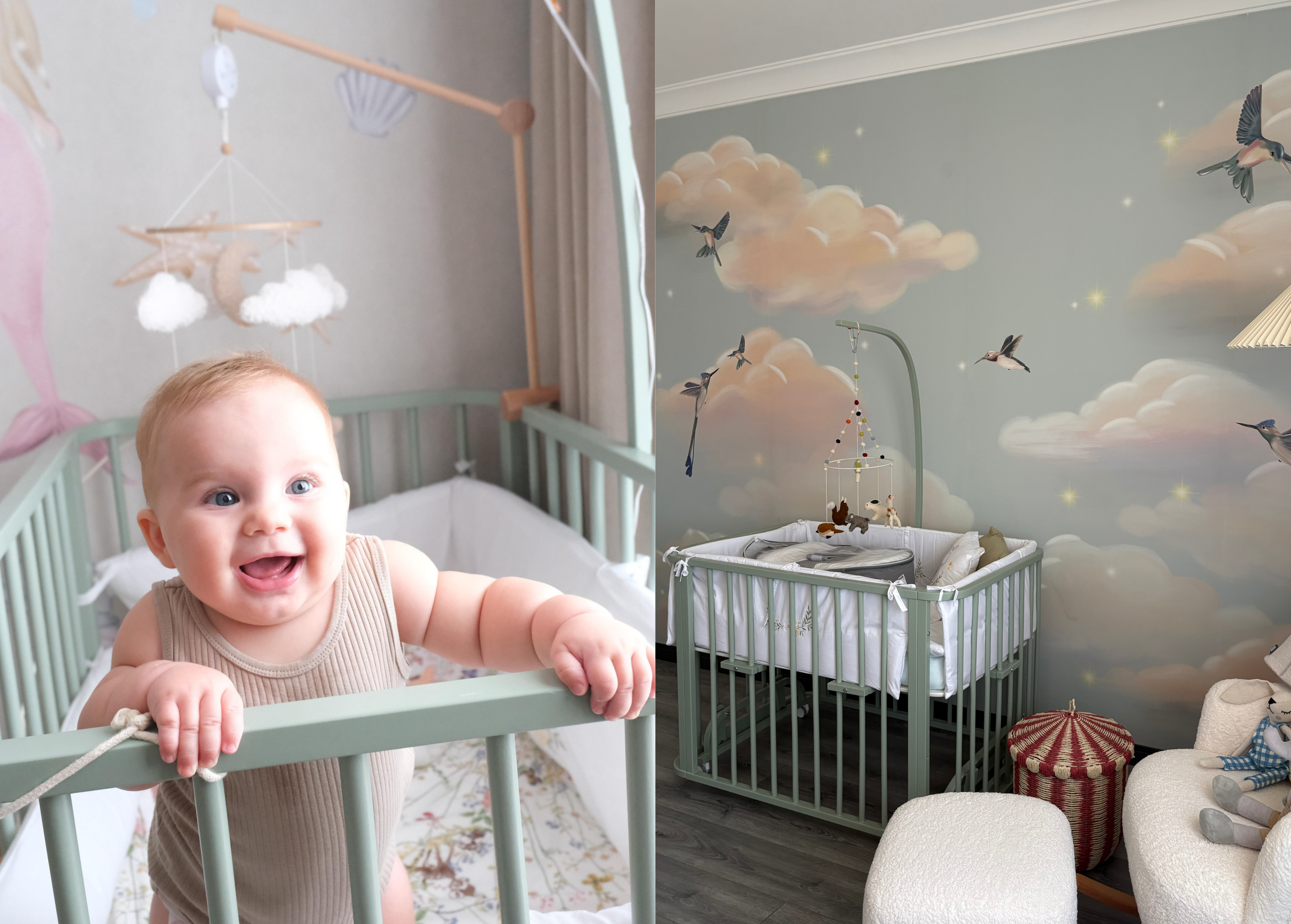 Doğal Ahşap 4 in 1 Beşik Takım 70 x 110 - anne yanı, karyola, oyun parkı, montessori + junior yatak - krem leaf
