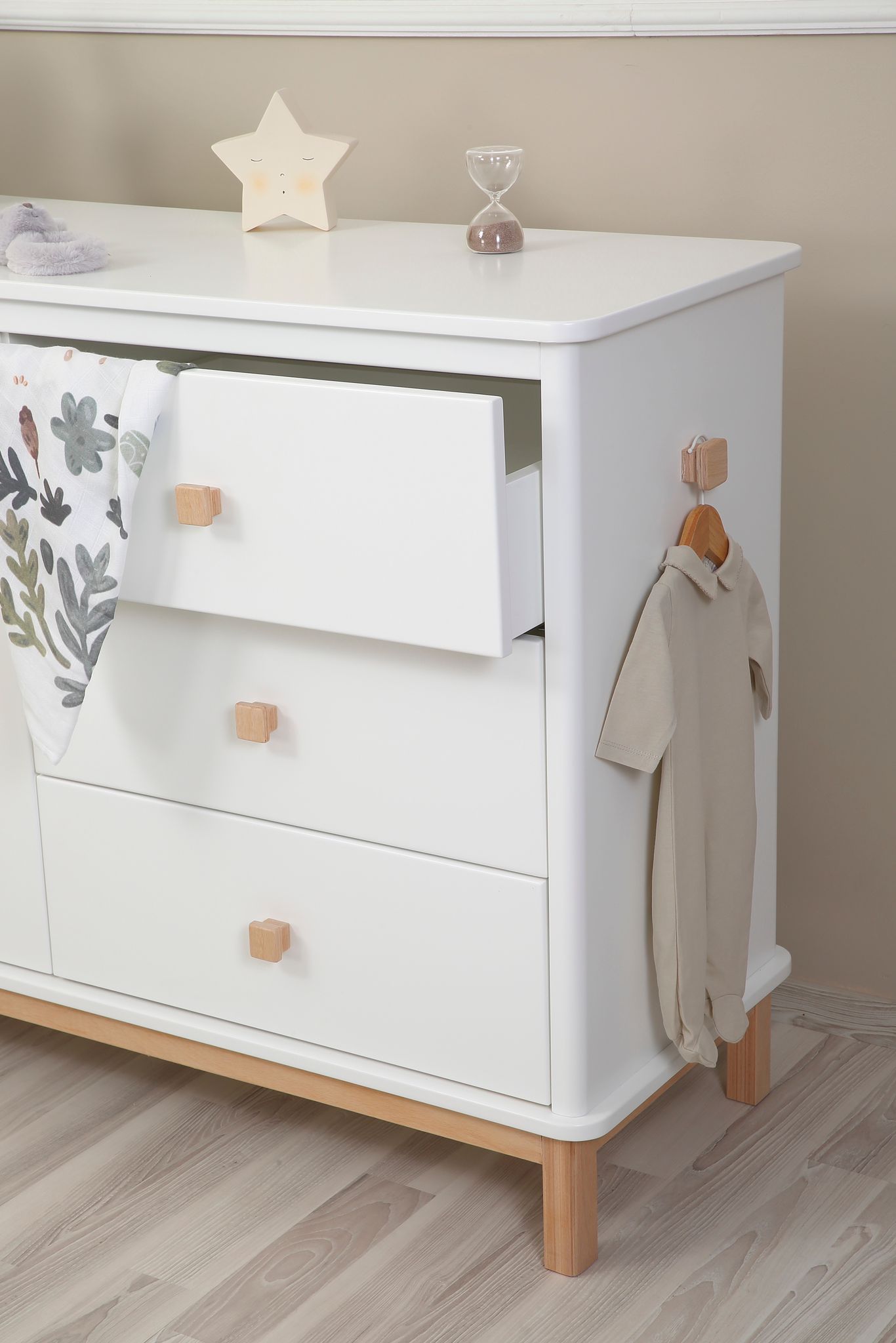 Doğal-Beyaz Ahşap 4 in 1 Beşik Takım 70 x 110 - anne yanı, karyola, oyun parkı, montessori + junior yatak - beyaz motherliness